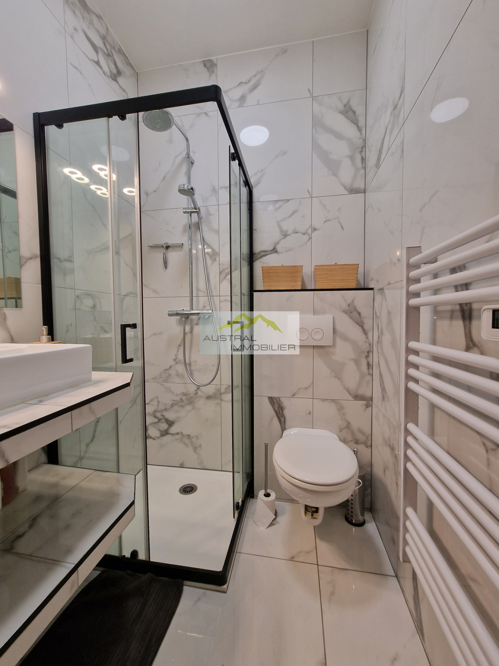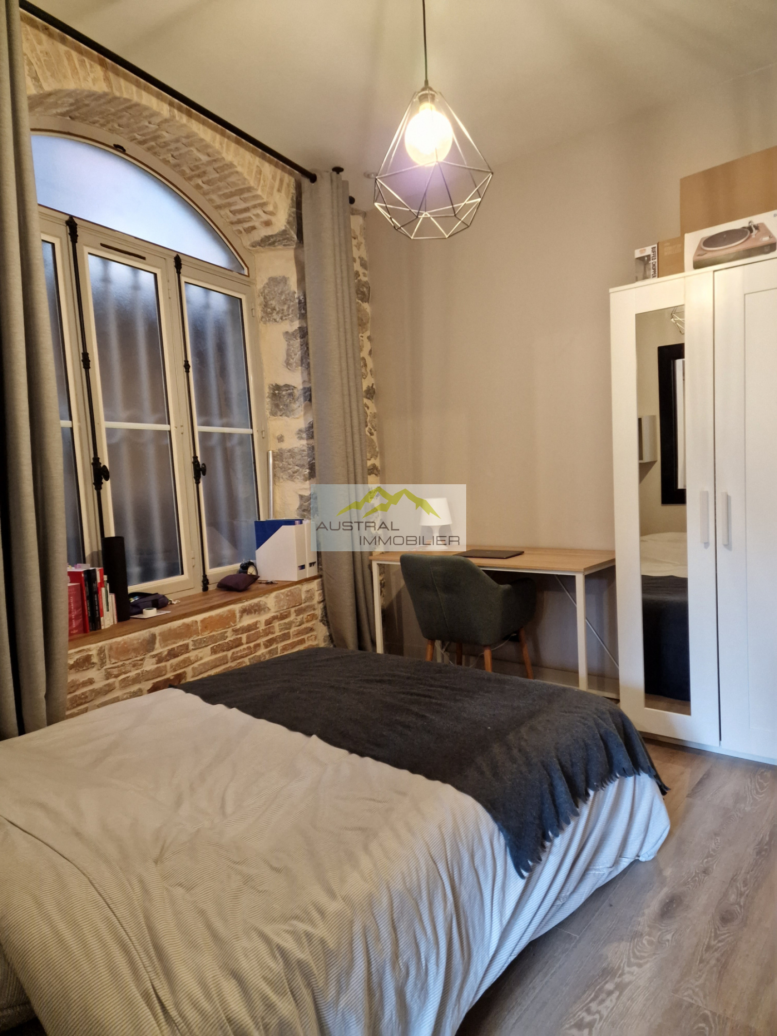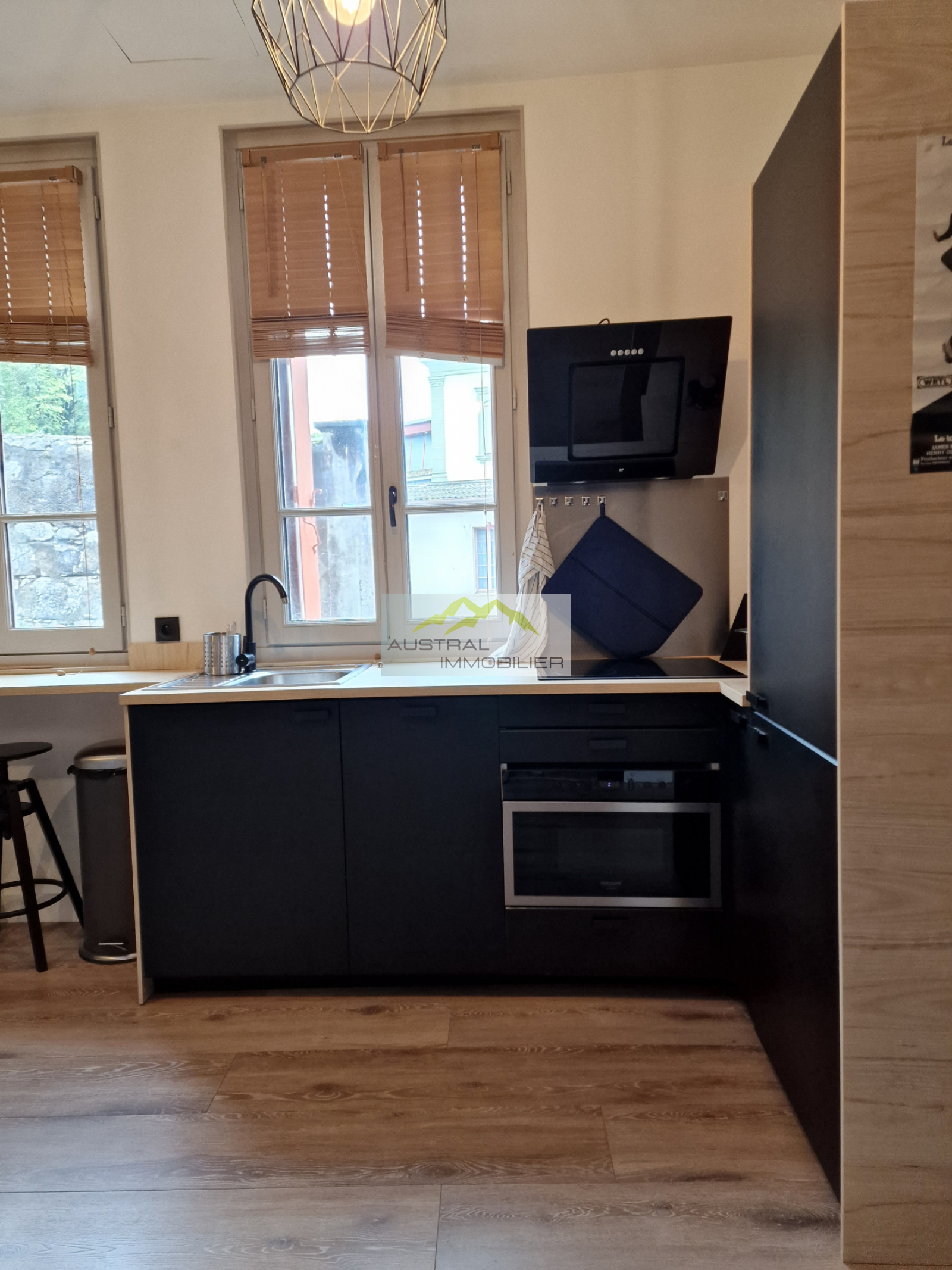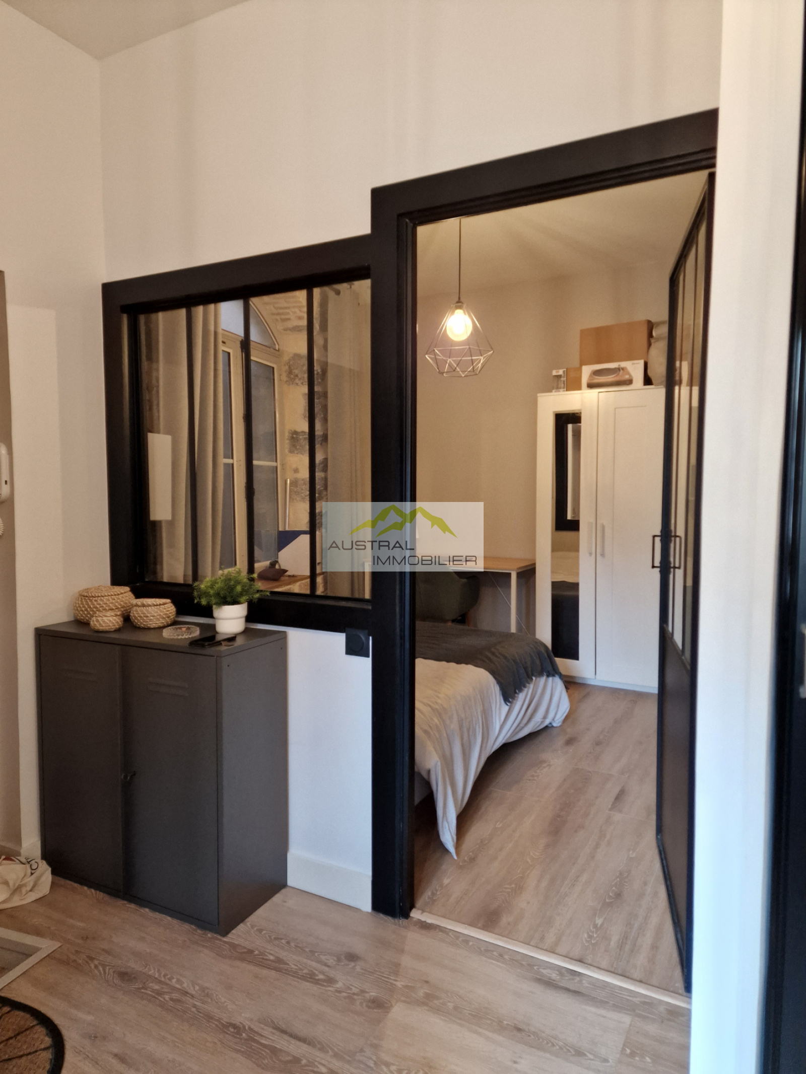 Celui-ci est composé d'une belle pièce à vivre avec une cuisine aménagée et entièrement équipée, l'ensemble donnant sur une chambre séparée par une verrière qui amène de la luminosité. Une salle d'eau avec W.C.suspendu rénovée avec des matériaux de qualité complète ce bien. Un espace avec lave linge/ sèche linge a été également aménagé.