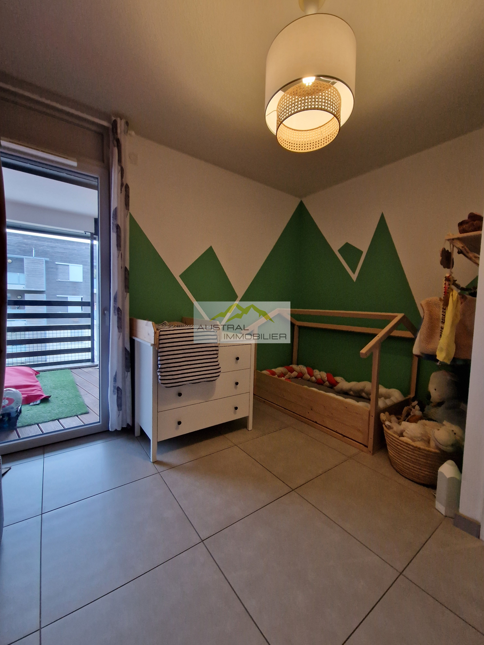 Située à l'opposé de la pièce de vie, la partie nuit s'organise autour d'un espace de tranquilité décoré de façon très cocooning : Une chambre parentale de 14,80 m² avec un décor en bois brut et des rangements intégrés et une deuxième chambre de 9,17 m² au couleur de l'enfance avec un rangement intégré et un accès via une porte fenêtre à la terrasse. Complètent l'espace nuit une grande salle d'eau aménagée et un WC indépendant.