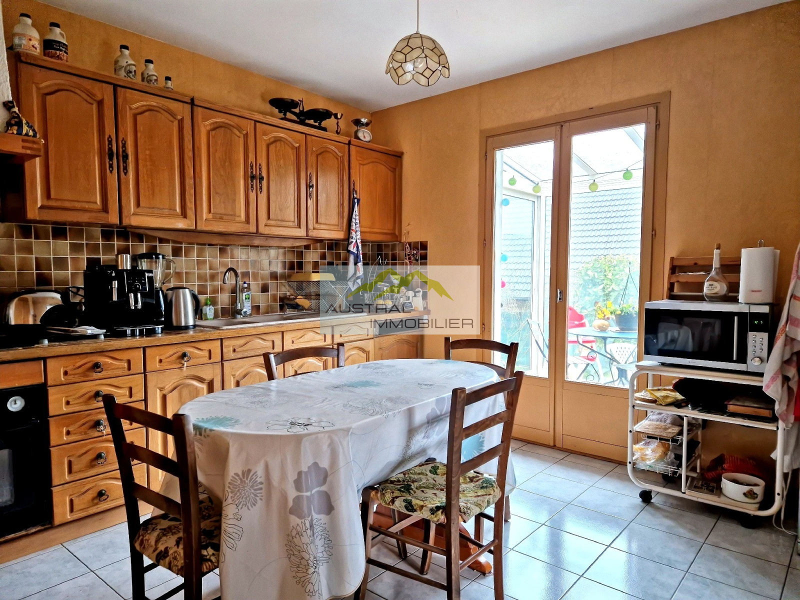 La cuisine séparée, aménagée et équipée (four, lave-vaisselle, plaque à induction) s’ouvre sur une agréable véranda d’environ 6 m², parfaite pour profiter de la lumière naturelle en toute saison.