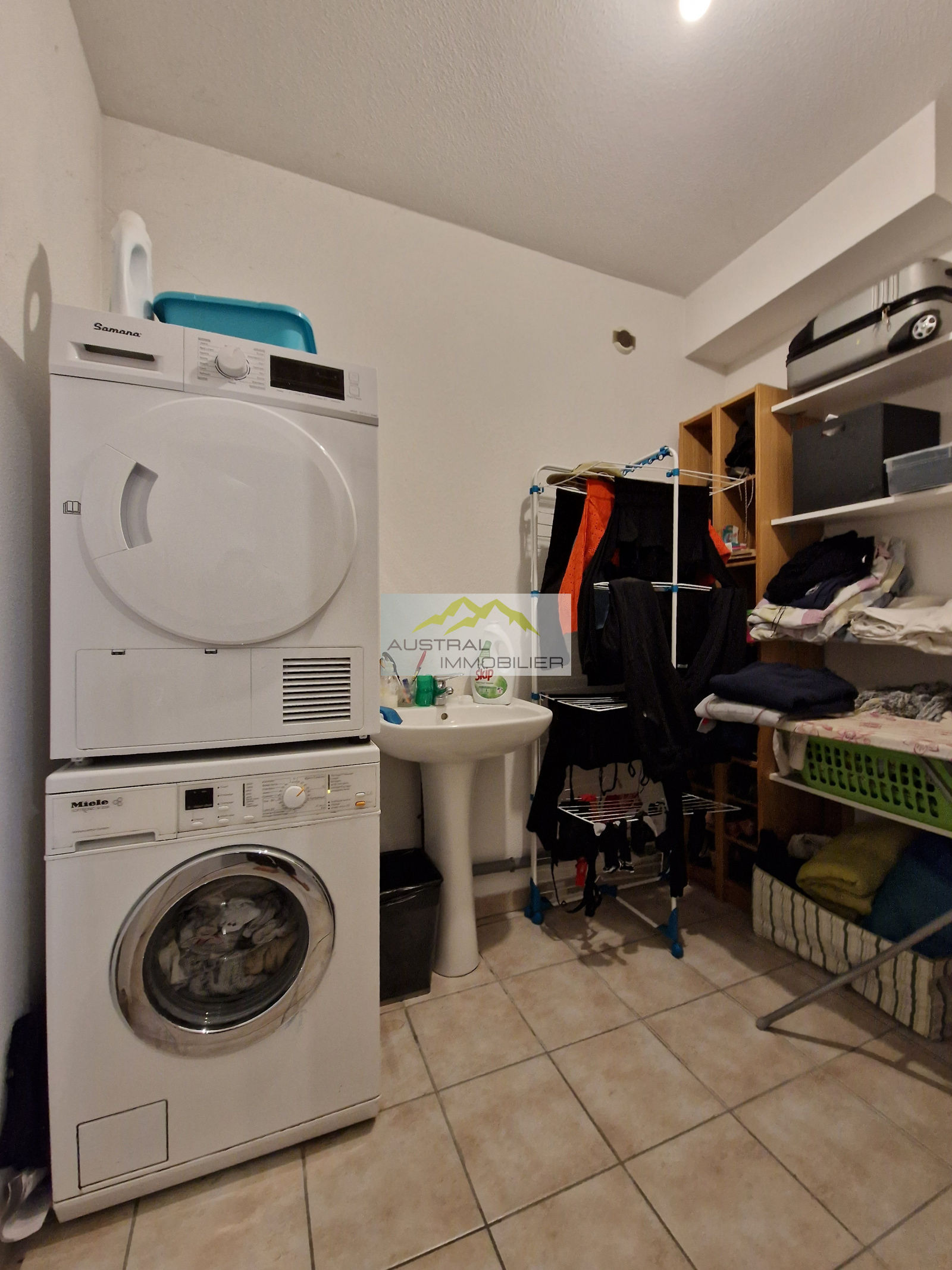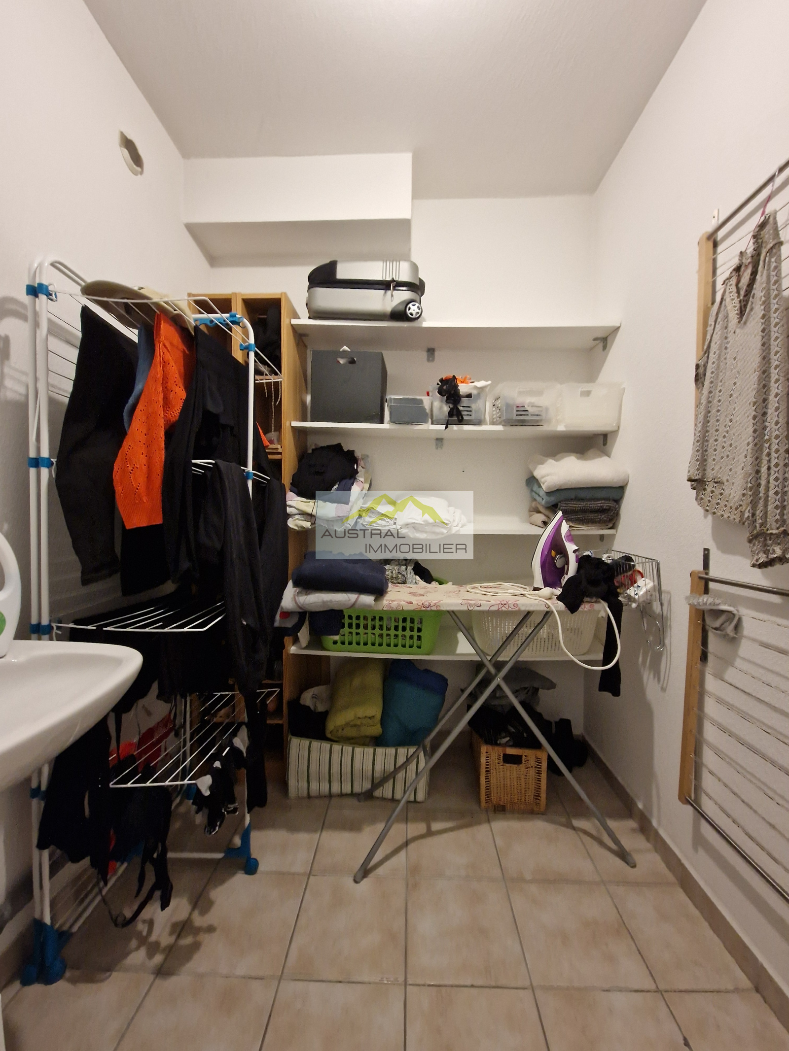D'une superficie de 103,11 m² en surface au sol et de 97,84 m² habitables, on trouve au rez-de-de-chaussée, un grand garage avec porte élèctrique télécommandée, un local technique pour la chaudière (gaz de ville), une spacieuse buanderie et un hall d'entrée avec rangement.